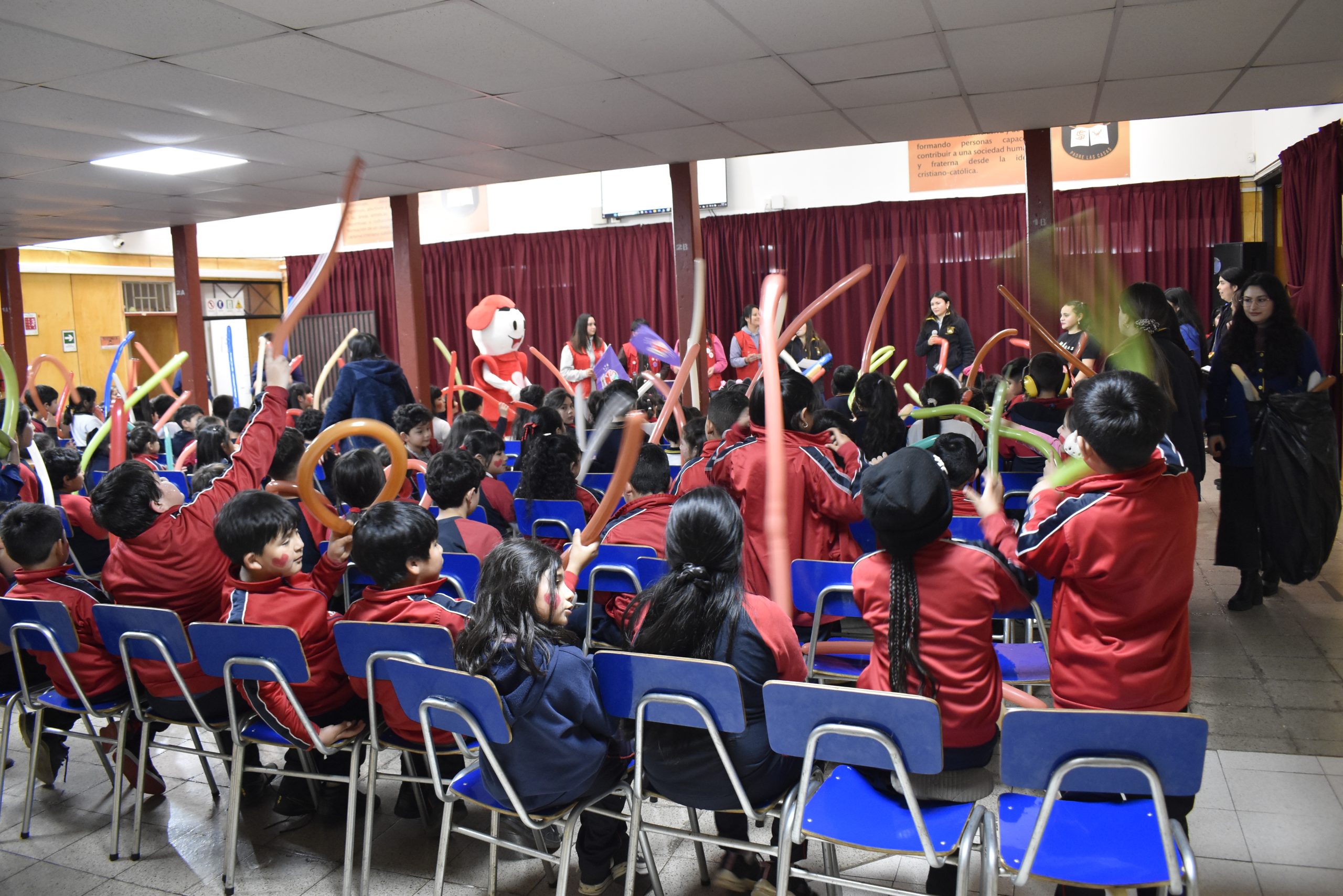 Desde el inicio de la jornada, los más pequeños recibieron con aplausos y gran expectación al corpóreo, compartiendo abrazos y demostrando el gran cariño que genera la campaña. El punto cúlmine del evento estuvo a cargo del Taller de Danza Moderna de la escuela, cuyas talentosas integrantes animaron a todos los presentes con enérgicas y alegres coreografías, contagiando el espíritu de unidad y cooperación.