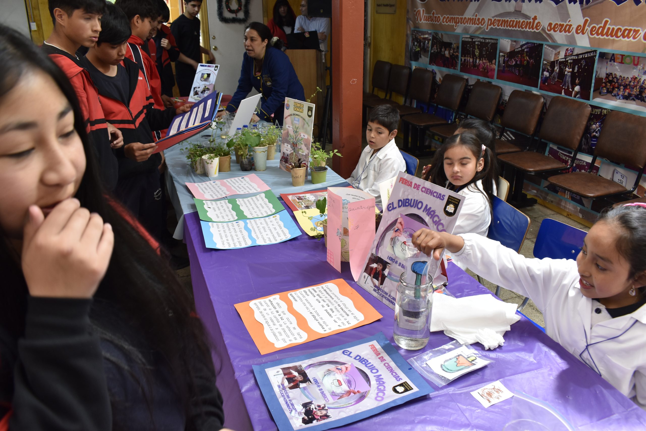 El patio principal de la escuela se transformaron en un verdadero laboratorio y centro de exposiciones. Cada stand era atendido por los propios estudiantes, quienes actuaron como jóvenes científicos, explicando a los visitantes –entre ellos, padres, apoderados y la comunidad educativa– el objetivo de sus investigaciones, la metodología utilizada y las conclusiones obtenidas.
